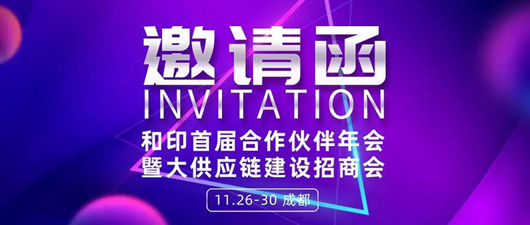 很高興的通知您,和印將于11月26日起在成都舉行“和印首屆合作伙伴年會暨大供應(yīng)鏈建設(shè)招商會”,旨在攜手合作伙伴們,共同探討未來發(fā)展方向,共建和印大供應(yīng)鏈體系;同時,本次年會將嫁接“2019中國現(xiàn)代辦公行業(yè)年會”,獲取更多價值資訊,帶來更多商業(yè)機遇?,F(xiàn)向您發(fā)出誠摯的邀請!
